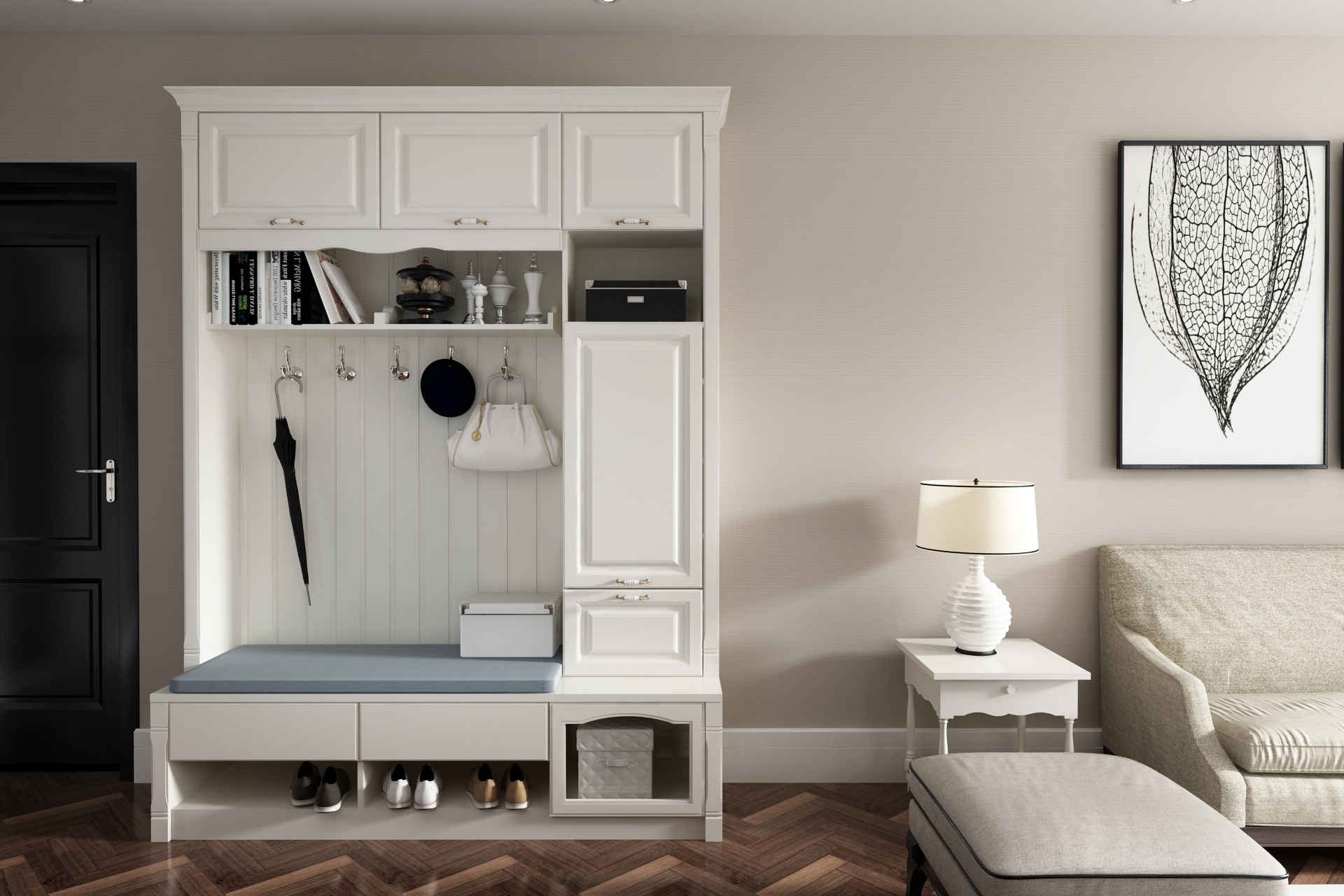 全鋁鞋柜-02(風格:簡歐;顏色:暖白)